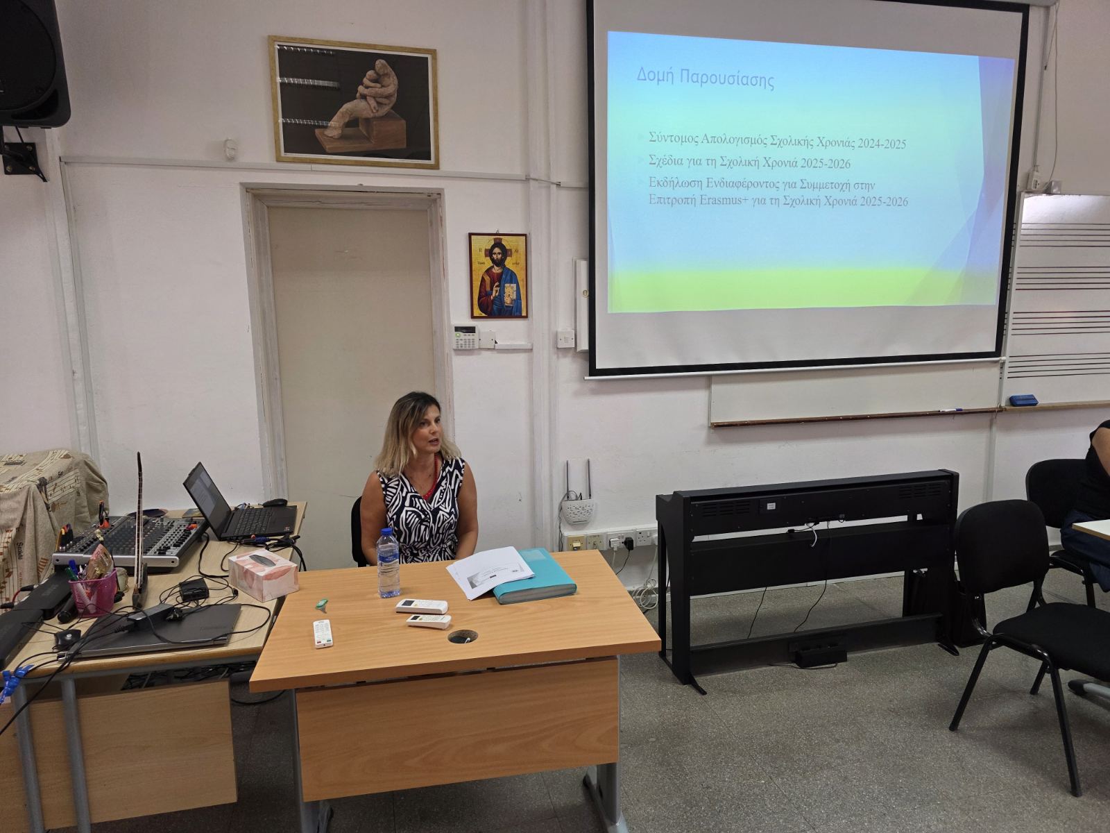 Την Τετάρτη 3 Σεπτεμβρίου 2025 παρουσιάστηκε σε συνεδρίαση του Καθηγητικού Συλλόγου ο απολογισμός των δράσεων του Σχολείου στο πλαίσιο του Προγράμματος Erasmus+ κατά τη σχολική χρονιά 2024-25 και τα σχέδια μας για τη νέα σχολική χρονιά. Επίσης, πραγματοποιήθηκε διάχυση της νέας γνώσης που αποκτήθηκε μέσω επιμορφωτικών σεμιναρίων στο εξωτερικό συγχρηματοδοτούμενων από το Πρόγραμμα Erasmus+, τα οποία παρακολούθησαν εκπαιδευτικοί του Σχολείου μας κατά τη σχολική χρονιά 2024-25.