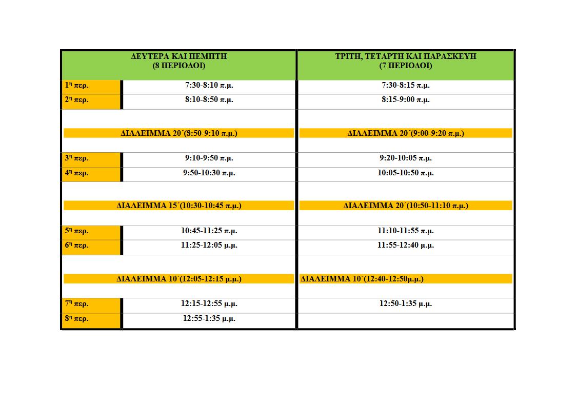 Ωράριο Λειτουργίας